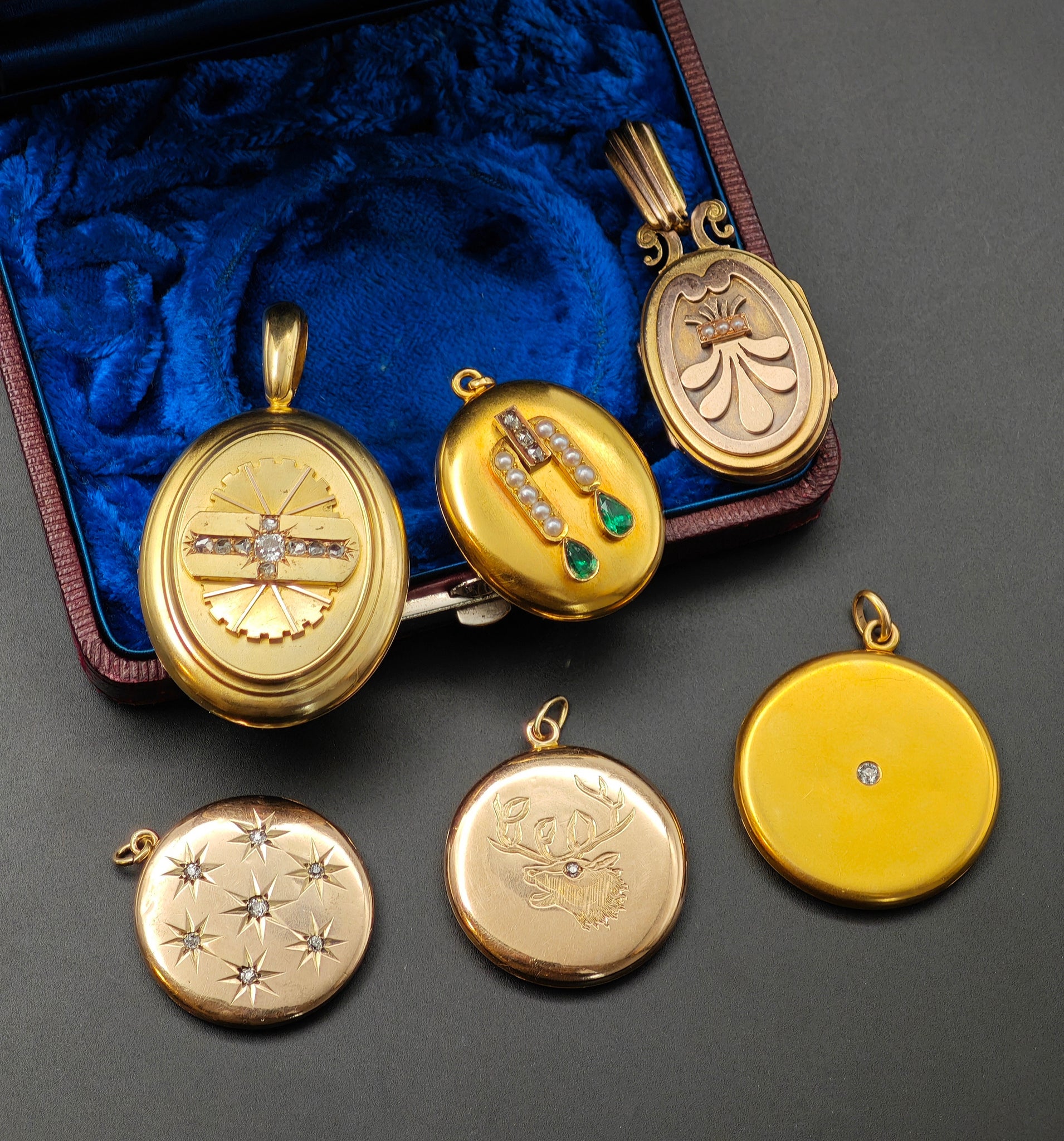 Opening from the side, it reveals two compartments perfect for photos, a lock of hair, or a secret love note. The locket remains in an amazing condition and it retains two bezels and one fabric liner.