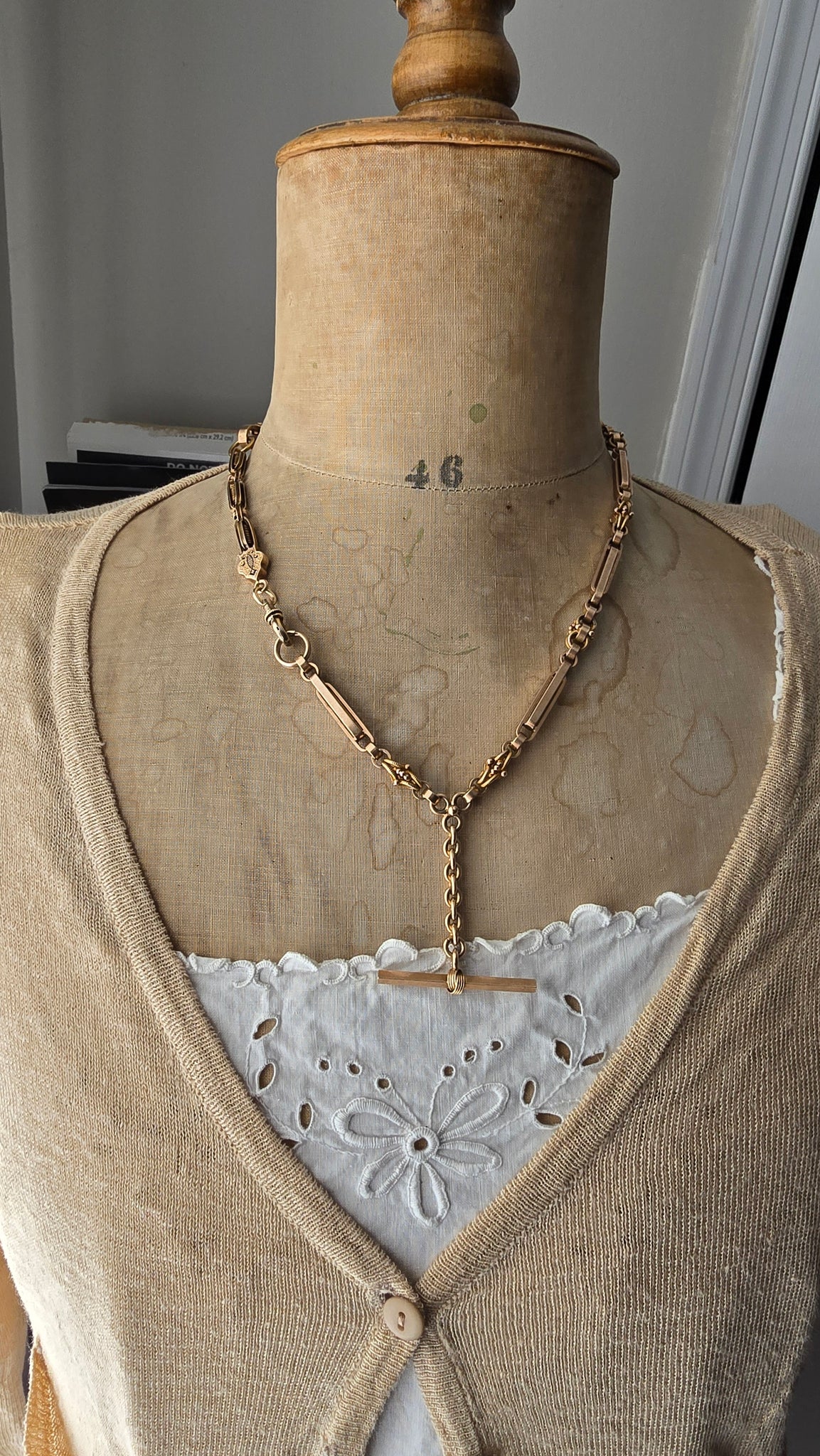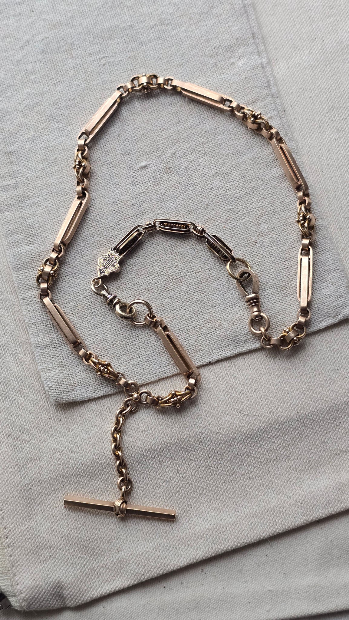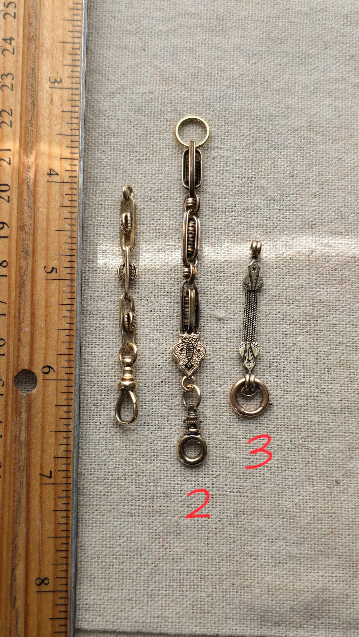 • Composition: 12k link section, 14k split ring, 10k swivel dog clip (with a likely non-gold inner core for structural support — very common in Victorian watch fob findings)