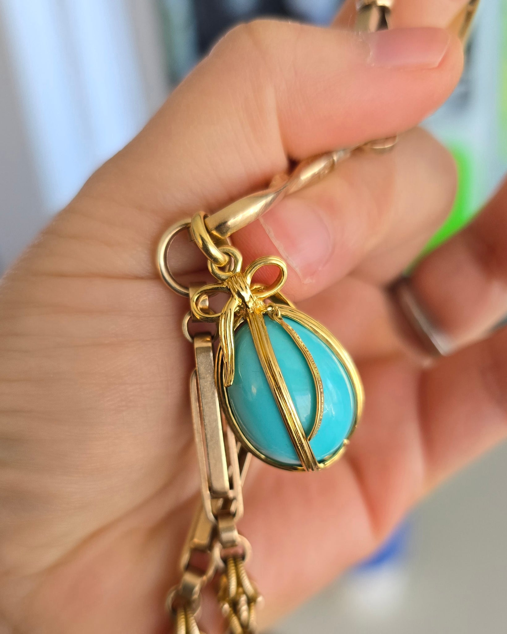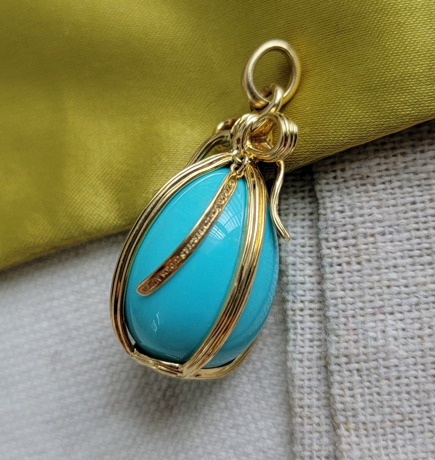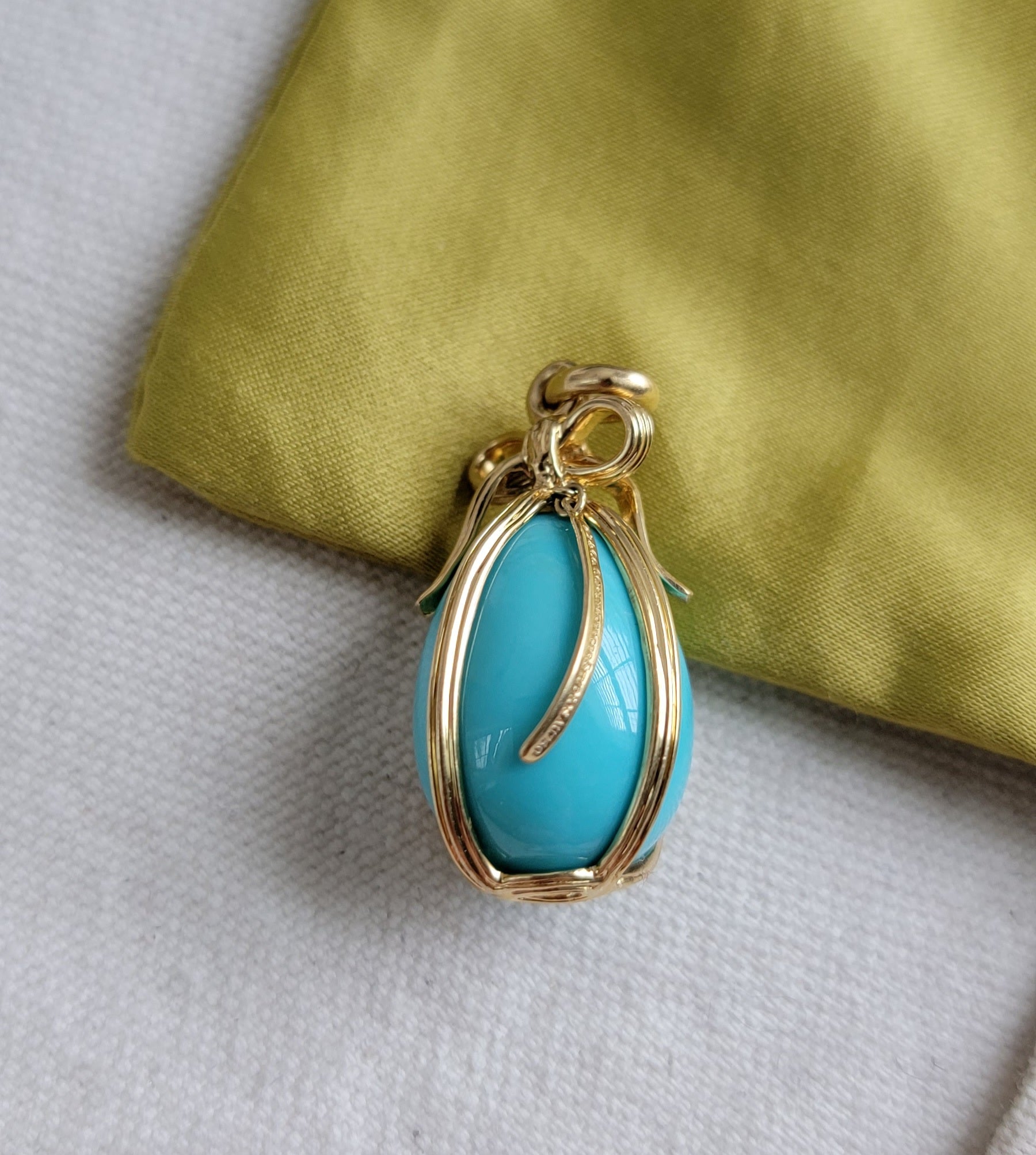 More importantly, this turquoise egg pendant demonstrates that unmistakable, dreamy blue shade known as "Tiffany Blue" — soft yet vibrant, timeless yet instantly recognizable.