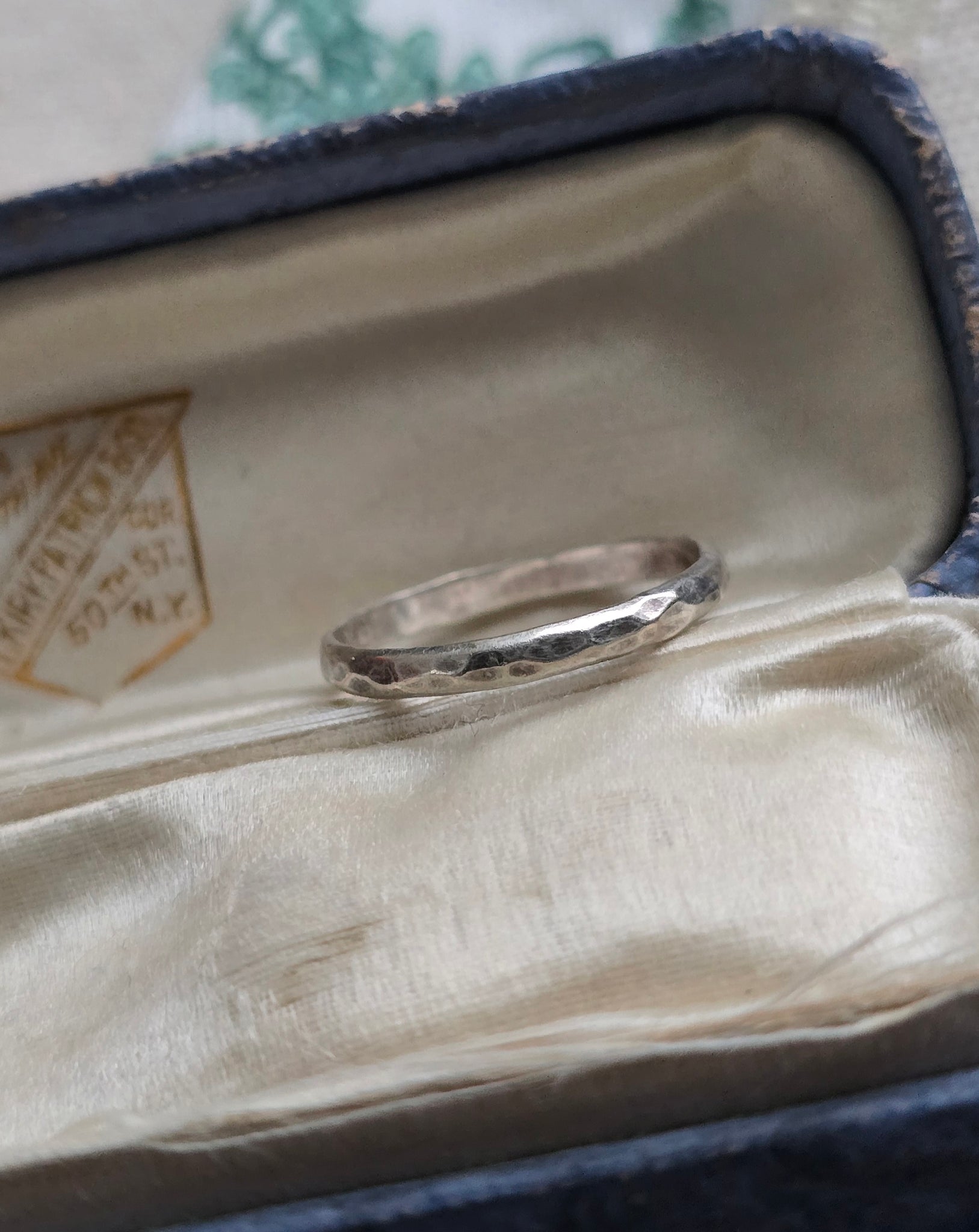 Antique Art Deco Orange Blossom Hammered Texture Handmade Sterling Silver Band Ring, Wedding Band, Size 5.75